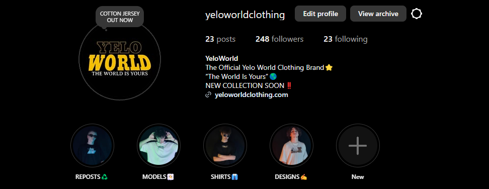 The first official collection of Yelo World Consisting of 5 t-shirts